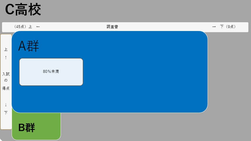 ここでは80%がA群枠だとします。なお、右下の灰色のエリアは不合格エリアです。